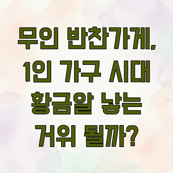 무인 반찬가게는 분명 매력적인 사업 아이템입니다. 하지만 철저한 사전 조사와 준비, 그리고 현실적인 어려움에 대한 대비 없이 뛰어들었다가는 낭패를 볼 수도 있어요. 시장 트렌드를 정확히 읽고, 자신만의 강점을 살려 꾸준히 노력한다면 분명 좋은 결과를 얻을 수 있을 겁니다.