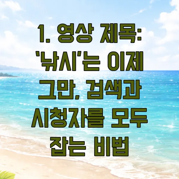 유튜브 영상의 첫인상은 제목입니다. 아무리 좋은 영상도 제목이 엉망이면 클릭률이 떨어질 수밖에 없어요. 낚시성 제목으로 잠시 클릭을 유도할 순 있겠지만, 결국 시청자는 실망하고 채널을 떠나게 되죠.